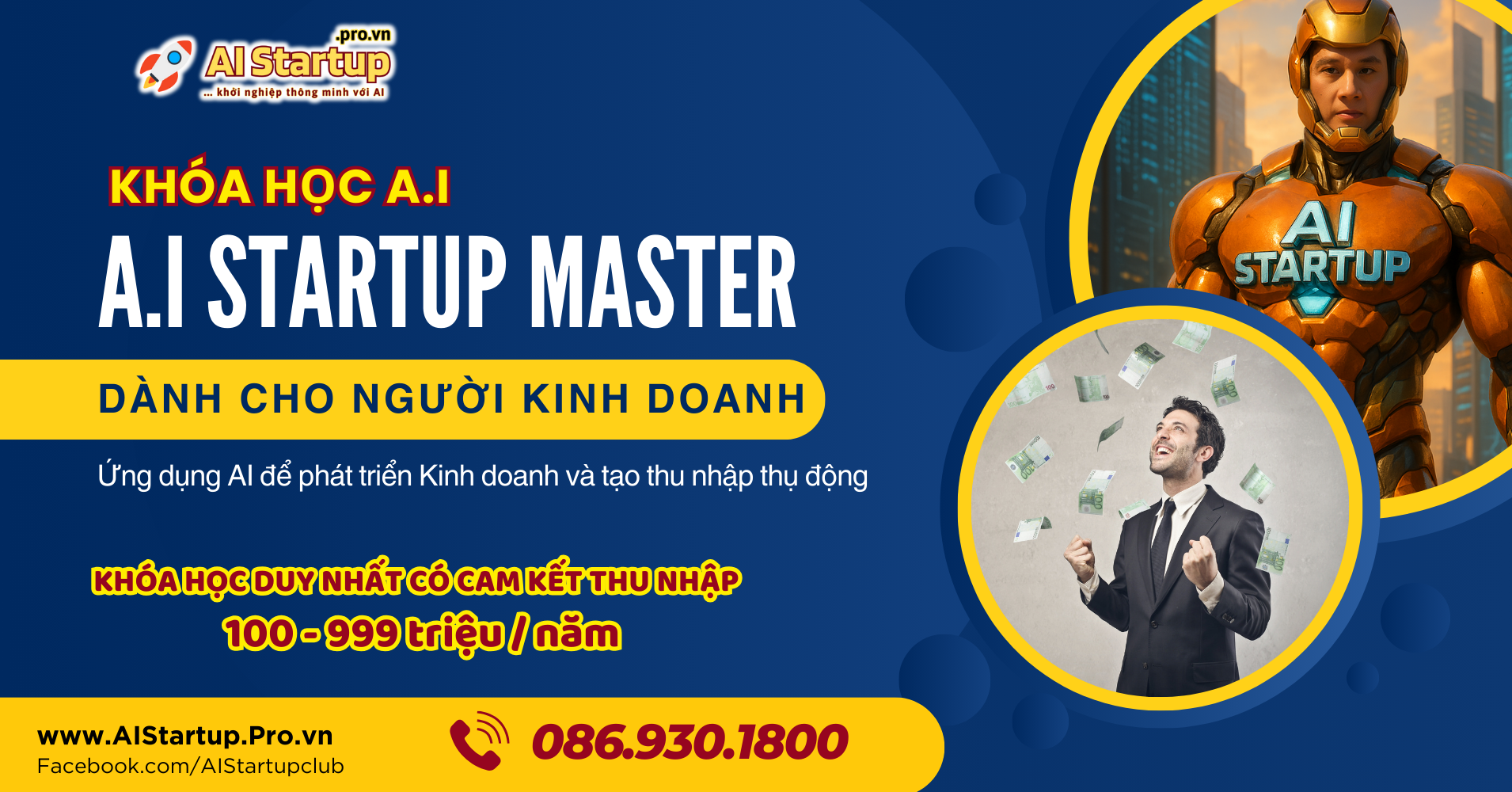 🚀AI Startup Master khóa học dành cho các bạn sinh viên tăng kỹ năng ứng dụng AI trong công việc và có thể biến AI thành 1 trợ lý giúp bạn kiếm tiền tự động từ 10 – 30 triệu / tháng